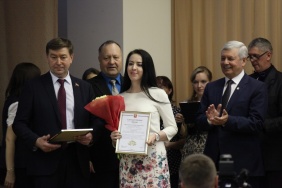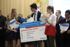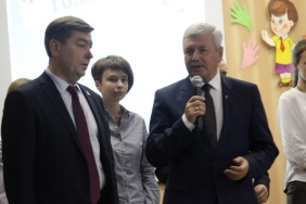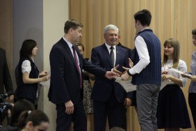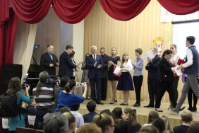 Председатель Законодательного Собрания Владимир Мякуш и депутат Законодательного Собрания Владимир Чебыкин поздравили победителей конкурса "Ученик года 2016–2017", который проводился среди школьников Металлургического района
