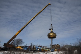 В первый день весны, 1 марта, Владимир Мякуш побывал в поселке Полетаево Сосновского района Челябинской области, где состоялось поднятие куполов на Храм Покрова Пресвятой Богородицы