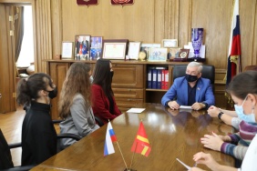 Владимир Мякуш вручил специальный приз Законодательного Собрания финалистам областного народного телевизионного конкурса «Марафон талантов» вокальному дуэту «Two do»