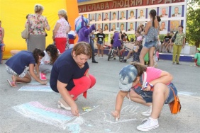 Во время празднования маленьких зрителей ждал конкурс рисунков на асфальте «Моя Россия». За 20 минут дети должны были изобразить Россию такой, какой они её видят или хотели бы видеть. Любимым сюжетом рисунков стал российский флаг РФ, который раскрасил в свой триколор всю площадь.