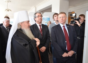 В рамках визита митрополита в ЮУрГУ состоялось открытие выставки и презентация дипломных работ студентов Архитектурного и Архитектурно-строительного факультетов по воссозданию первоначального облика разрушенных храмов и церквей Южного Урала. Принять участие в открытии выставки и презентовать свои работы приехали авторы – выпускники ЮУрГУ, в том числе из Нижневартовска, Нового Уренгоя, Нижнего Тагила.
