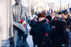 У памятника «Броневое бюро» возле Магнитогорского государственного технического университета собравшиеся почтили память павших, возложили цветы.