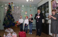 27 декабря депутат Законодательного Собрания Челябинской области Николай Янов поздравил воспитанников детского дома № 5 с Новым Годом. Малыши двух дошкольных групп получили от депутата сладкие подарки, а ребята постарше билеты на три D сеанс фильма «Три богатыря» в один из лучших кинотеатров города. Областной парламентарий не скрывает, что приоритетным направлением его депутатской деятельности была и остается поддержка образовательных учреждений Калининского района. Летом этого года на средства депутата были отремонтированы помещения младшей группы детского дома. Депутат делится впечатлениями: «Сегодня замечательное настроение, канун Нового года, счастливые лица детей. Хочу выразить слова благодарности воспитателям детского дома № 5, которые смогли создать атмосферу домашнего праздника и уюта для своих воспитанников, окружили их заботой и вниманием». Дети приготовили новогодние стишки и водили вместе с депутатом хоровод вокруг красавицы елки.