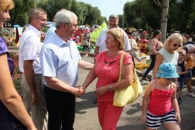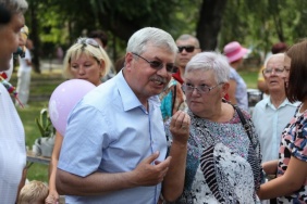 Председатель Законодательного Собрания Владимир Мякуш поприветствовал участников творческого состязания, а до начала концерта посмотрел выставку, в которой приняли участие десятки садоводов, демонстрирующие свои агрономические успехи целыми поколениями.