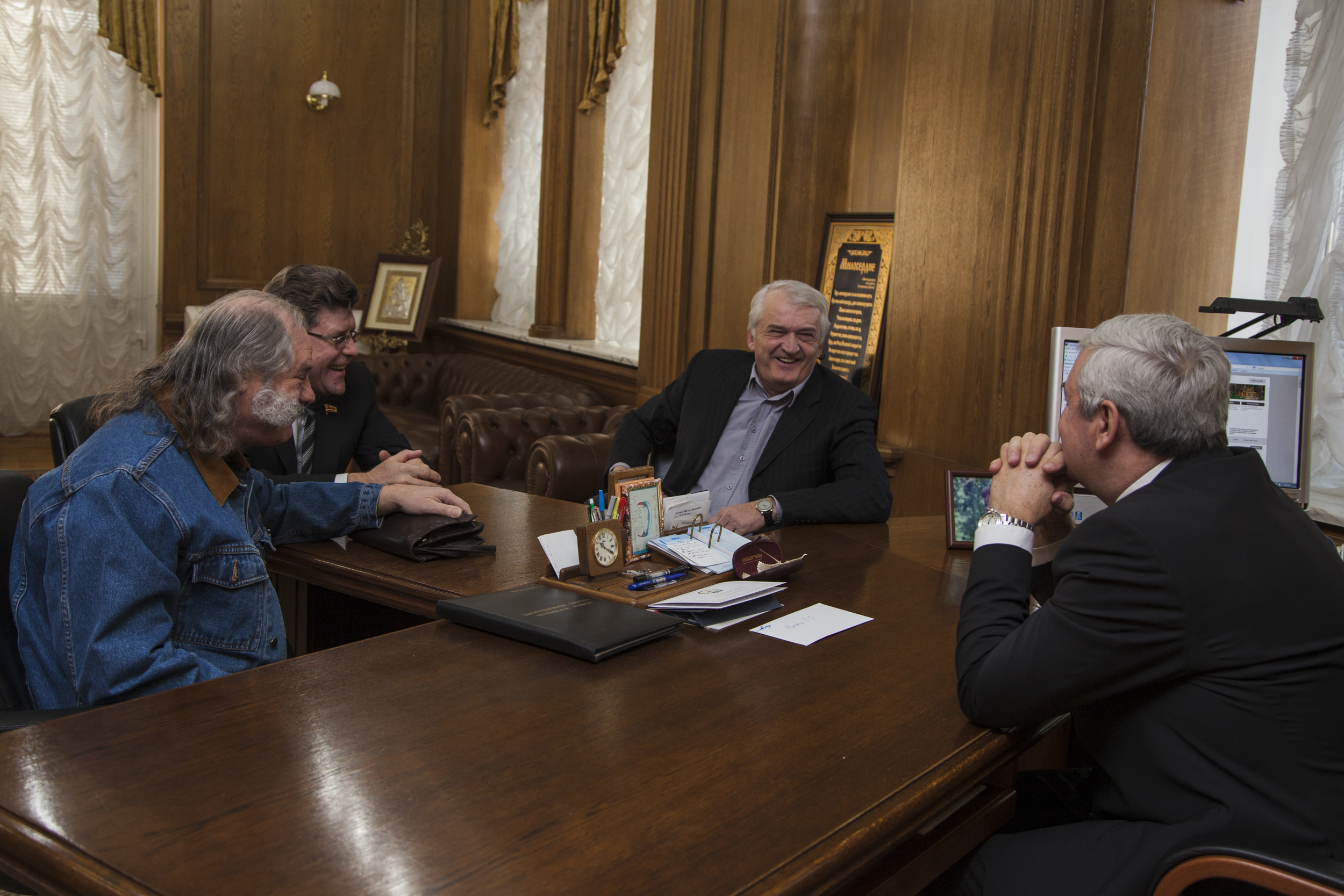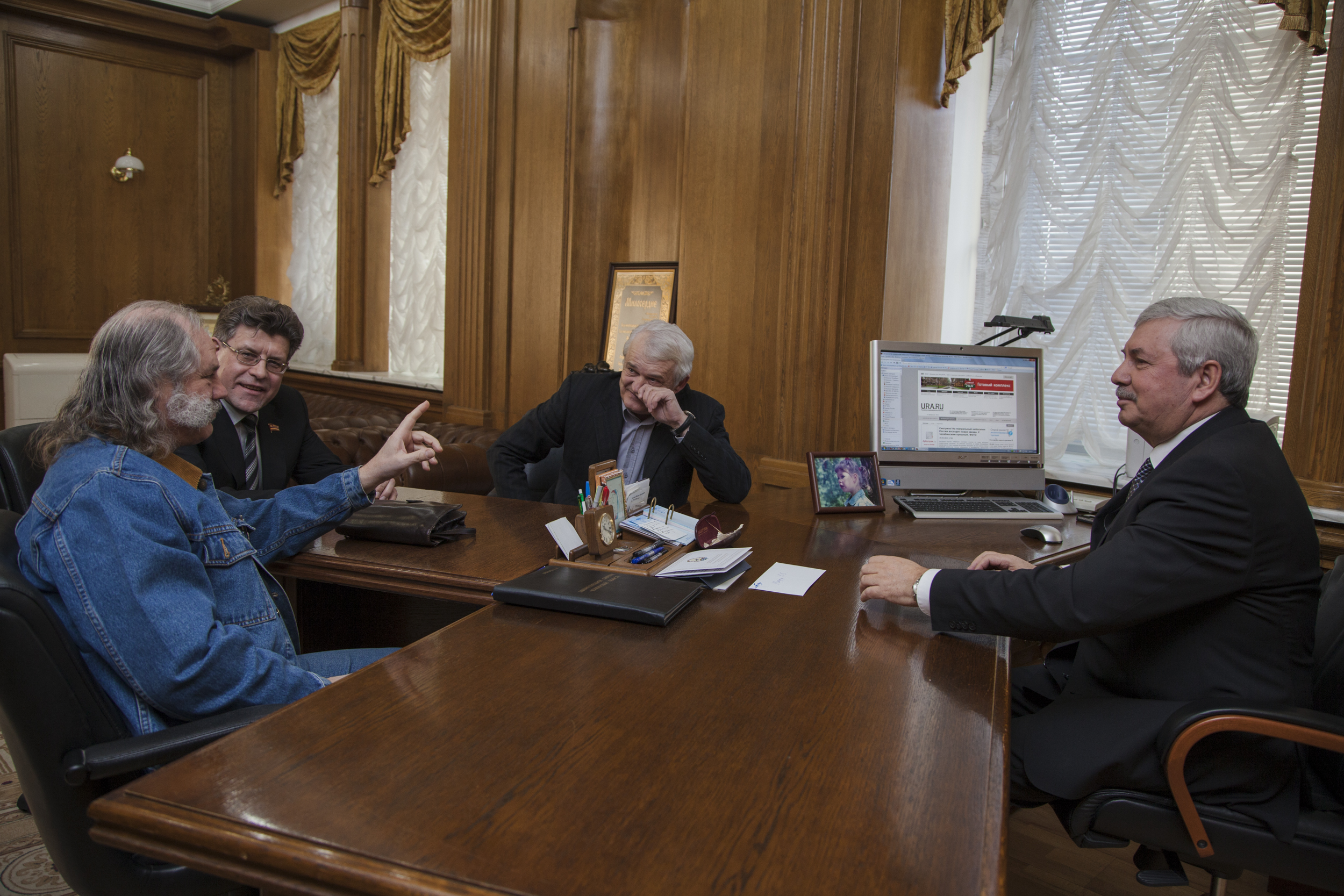 Сегодня состоялась встреча председателя Законодательного Собрания Челябинской области Владимира Мякуша и участников ВИА «Ариэль» - Ростислава Геппа и Бориса Каплуна.